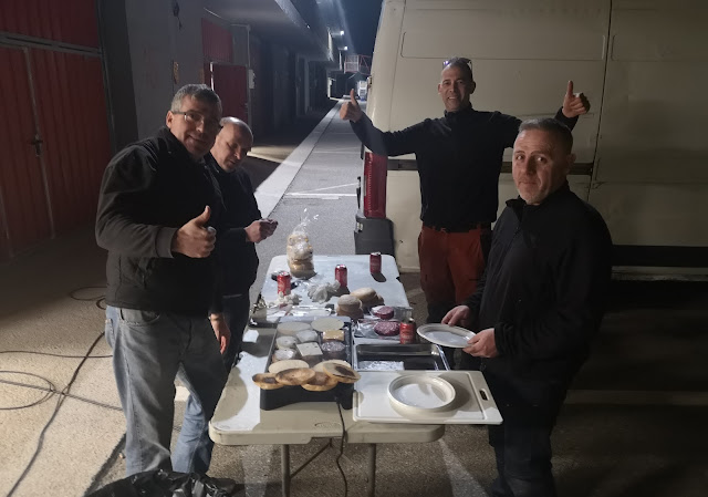 ... menos mal que nuestros amigos y vecinos de box se organizan una buena intendencia y nos invitaron a compartirla con ellos, ahhh, y gracias "Motobox.Cat" también por la pizarra!